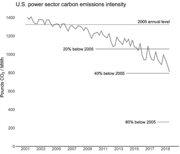 Image: U.S. power sector carbon emissions intensity. CREDIT: College of Engineering - Carnegie Mellon University
