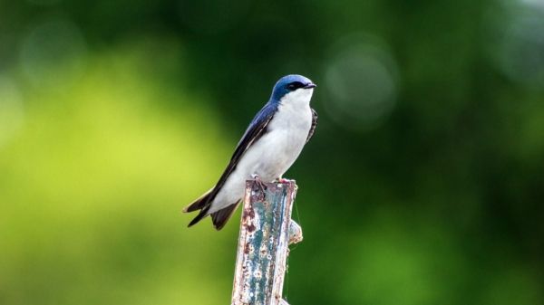 Image: An Ithaca-area tree swallow perches on a metal post. (Credit: David Chang van Oordt/Cornell University)