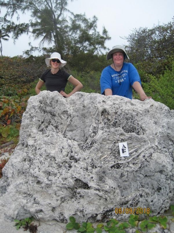 Image: LSU doctoral student in biology Joanna Griffiths and professor Kristine DeLong stand behind a coral reef fossil from the Gulf of Mexico during the last interglacial period about 120,000 years ago. (Credit: Kristine DeLong)