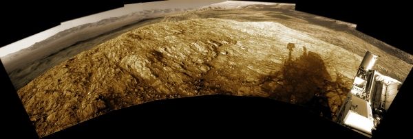 Shadows grow long near sunset in this wide panoramic view from the Curiosity rover on Mars. Made with Curiosity's navcam, the scene covers about 200 degrees from north through east to south (left to right), stitched together from frames taken by the Mars rover on sol 2616. That's just Earth date December 16. Curiosity is perched on top of a plateau on Western Butte. The distant northern rim of Gale crater is visible along the left. Near center is Central Butte, already visited by Curiosity. On the right, the shadow of the rover seems to stretch toward the base of Aeolis Mons (Mount Sharp), a future destination. The monochrome navcam frames have been colorized to approximate the colors of the late martian afternoon.