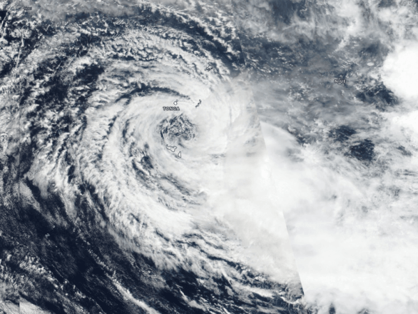 NASA-NOAA’s Suomi NPP satellite provided forecasters with an image of Tropical Cyclone Sarai and it showed a much weaker storm near Tonga in the South Pacific Ocean.