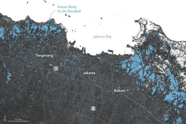 Since the rains began, researchers at NASA and partner agencies have been analyzing satellite- and ground-based data to locate potentially flooded areas. The flood proxy map above highlights areas that were likely to be flooded (indicated in blue) as of January 2, 2020. The data is currently being used by the ASEAN Humanitarian Assistance center, which has been working with the Indonesian National Board for Disaster Management (BNPB) to guide emergency responders. The information has also been used in reports to inform the Indonesian public.