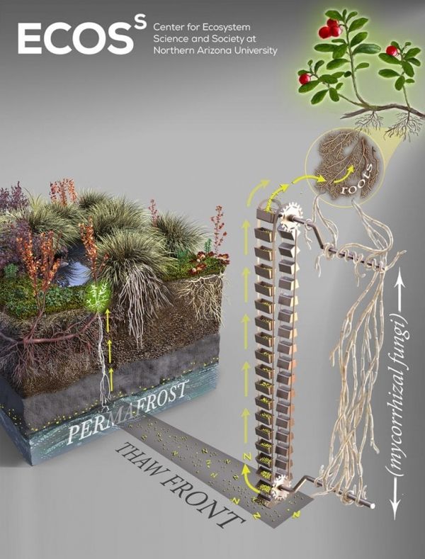 “This just doesn’t fit the paradigm of how we think these plants and their mycorrhizal partners work together,” said lead author Rebecca Hewitt from the Center for Ecosystem Science and Society (Ecoss) at NAU. “Previously, we thought only plants with extended root systems could access nutrients near the permafrost thaw front. But we saw that all these plants were using deep nitrogen, whether they had deep root systems or not, suggesting that mycorrhizal partners may provide access to the deep, cold permafrost table.”