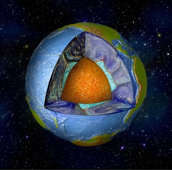 Image: Artist's rendition of Earth, cut away to reveal individual layers, including the deep mantle. (Credit: Mingming Li/ASU)