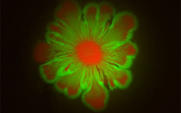 Microbial communities inhabit every ecosystem on Earth, from soil to rivers to the human gut. While monoclonal cultures often exist in labs, in the real world, many different microbial species inhabit the same space. Researchers at University of California San Diego have discovered that when certain microbes pair up, stunning floral patterns emerge.