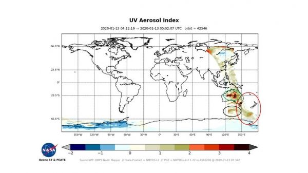 NASA scientists using data from its NOAA/NASA Suomi NPP satellite, has traced the movement of the smoke coming off the Australian fires across the globe showing that it has circumnavigated the Earth. In an image created from data gathered by the Ozone Mapping and Profiler Suite (OMPS) Nadir Mapper on Suomi NPP, a black circle shows the smoke which had been traced from its origins coming back to the eastern region of Australia after having traveled around the world. Suomi NPP carries carry five science instruments and is the first satellite mission to address the challenge of acquiring a wide range of land, ocean, and atmospheric measurements for Earth system science while simultaneously preparing to address operational requirements for weather forecasting. Suomi NPP also represents the gateway to the creation of a U.S. climate monitoring system, collecting both climate and operational weather data and continuing key data records that are critical for global change science.