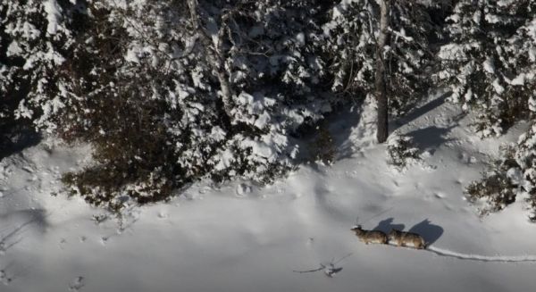 Image: Gray wolves, like this pair on Isle Royale, are listed as endangered in the United States. CREDIT: Michigan Technological University
