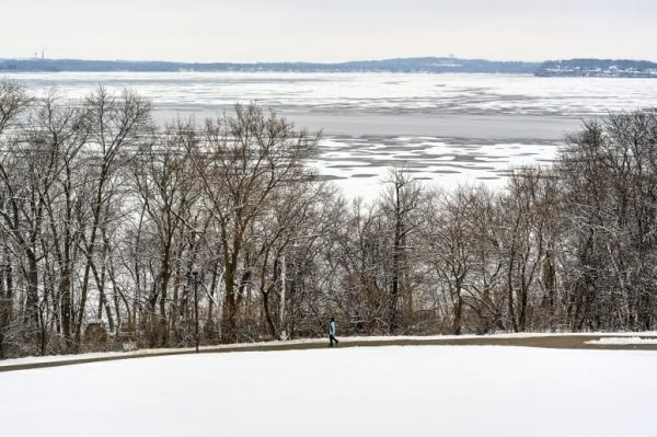 Image: Partially frozen Lake Mendota is seen from Observatory Hill on Jan. 13, 2020. (Credit: PHOTO: JEFF MILLER)