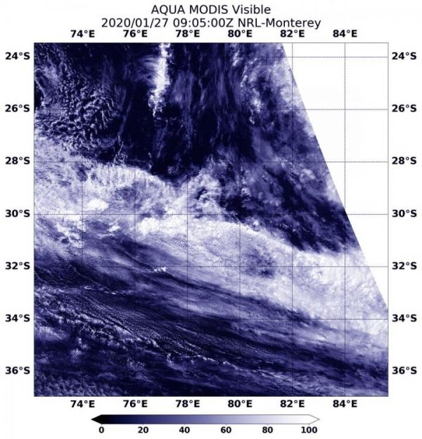 Image: On January 27 at 4:05 a.m. EST (0905 UTC), the MODIS instrument aboard NASA's Aqua satellite provided a visible image of the remnant clouds of former Tropical Cyclone Esami in the Southern Indian Ocean. (Credit: NASA/NRL)