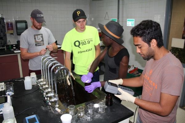 Image: Researchers are shown at a water treatment plant in the Susquehanna River basin collecting treated water samples. From right are Tulio de Souza, Faith Kibuye, Zach Kliuber, and Dan Leavy. CREDIT: BRYAN SWISTOCK/PENN STATE