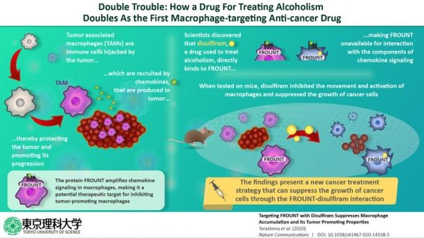 A research group led by Yuya Terashima from the Tokyo University of Science saw this as an opportunity to explore the realm of developing novel anti-cancer drugs. Their seminal work in Nature Immunology 2005 reported the discovery of a new target protein called FROUNT, which is linked to regulation and movement of the TAMs. Since FROUNT amplified "chemokine signaling," a type of cellular communication, an integral process for TAM accumulation and activity, it was therefore linked directly to TAM regulation.