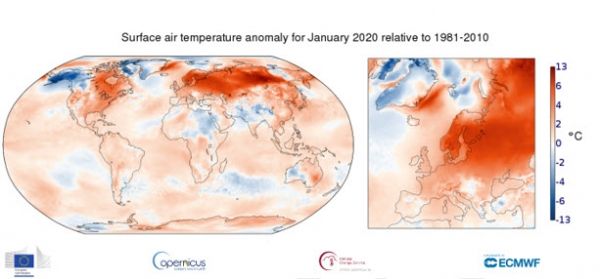 In Europe, January was 3.1°C warmer than the reference period and 0.2°C warmer than January 2007, making it the warmest January recorded in Europe.