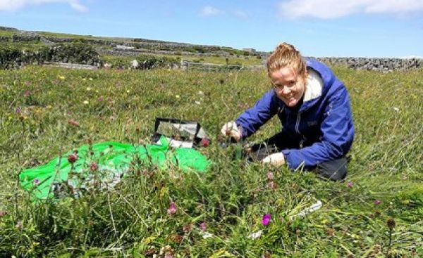 Image: Lead author Dr Annabel Smith measures a plantain during the annual census on Inis Oirr, Ireland. CREDIT: Dr Annabel Smith