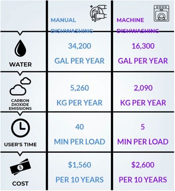 - If by-hand dishwashers switched from the running tap to the two-basin method, they could reduce associated greenhouse gas emissions by about two-thirds.