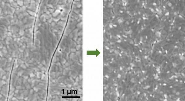 The study, published in the journal Acta Materialia, finds that though perovskite films tend to crack easily, those cracks are easily healed with some compression or a little bit of heat. That bodes well, the researchers say, for the use of inexpensive perovskites to replace or complement pricy silicon in solar cell technologies.