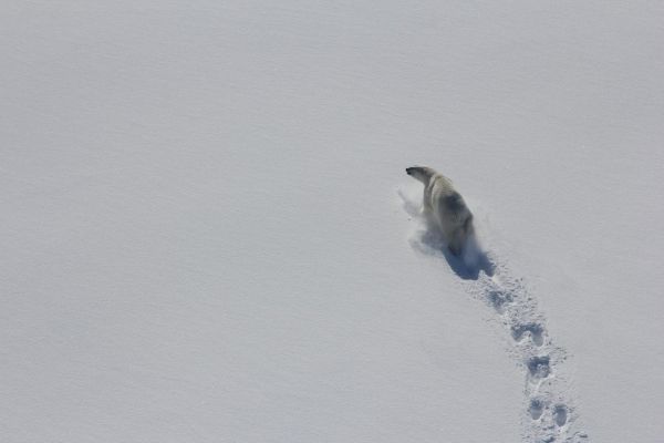 Image: A polar bear in Baffin Bay, West Greenland in 2012 seen from the air. (Credit: Kristin Laidre/University of Washington)