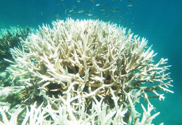 Image: Bleached staghorn coral on the Great Barrier Reef in March 2017. BETTE WILLIS / ARC COE
