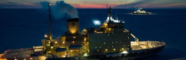 After weeks of churning slowly through sea ice in the remote Arctic Ocean, a Russian icebreaker carrying scientists, crew and new equipment has reached the German RV Polarstern, which is frozen into drifting sea ice about 100 miles from the geographic North Pole. During the next few days, people will carefully ferry tons of cargo between the two ships and dozens of scientists and crew will switch cabins, some bound for home after months on dark ice, others thrilled to begin a two-month stint serving science on the international Arctic climate mission.