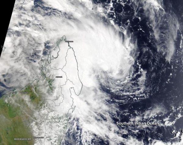 The Moderate Resolution Imaging Spectroradiometer or MODIS instrument aboard Terra provided a visible image of Tropical Cyclone 22S that revealed strong thunderstorms had circled the center of circulation and western quadrant. A banding of thunderstorms on the western side were bringing rainfall and gusty winds to northeastern Madagascar. Satellite imagery also shows the storm consolidating.