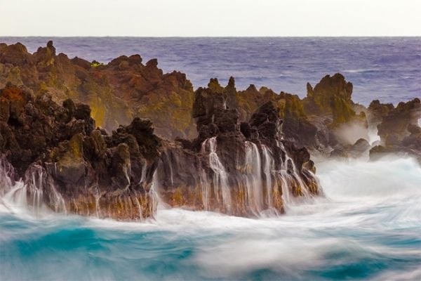 Over millions of years, Hawaiian volcanoes have formed a chain of volcanic islands stretching across the Northern Pacific, where ocean waves from every direction, stirred up by distant storms or carried in on tradewinds, have battered and shaped the islands’ coastlines to varying degrees.