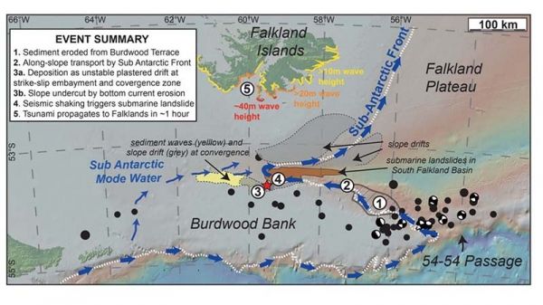 Scientists from Heriot-Watt University and the British Geological Survey found evidence of prehistoric submarine landslides in the Falkland Trough.