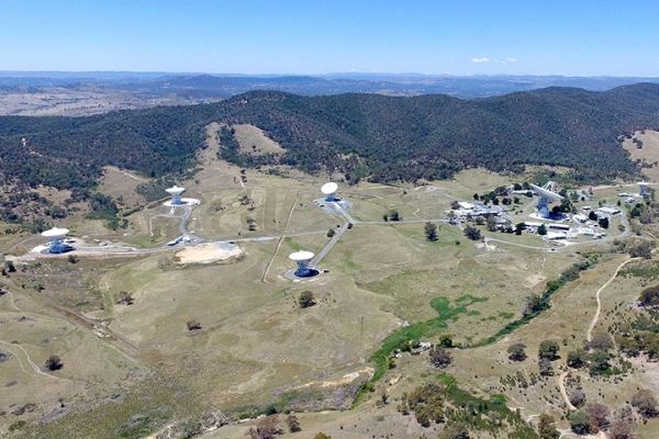 Each of the three DSN complexes has large antennas that are designed to enable daily radio communication between NASA spacecraft and engineers on Earth. Canberra, like the other two facilities, has at least four antennas, each with large, parabolic dishes and sensitive receiving stations. In the Landsat image at the top of the page, the dishes appear as white circles.