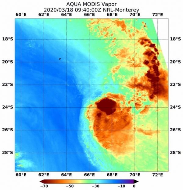 When NASA’s Aqua satellite passed over the Southern Indian Ocean on Mar. 18, it gathered water vapor data that showed wind shear was adversely affecting Tropical Cyclone Herold.