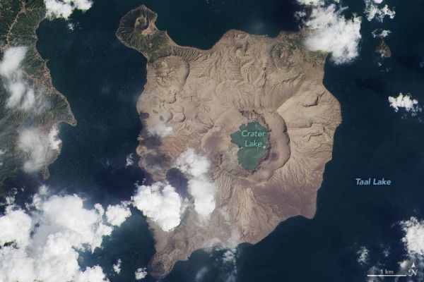 On January 12, 2020, the Taal Volcano in the Philippines awoke from 43 years of quiet and began to spew gases, ash, and lava into the air. In the days and weeks that followed, the eruption dropped a layer of unusually wet, heavy ash on the surrounding landscape, withering vegetation and turning the lush fields and forests of Volcano Island a ghostly gray.