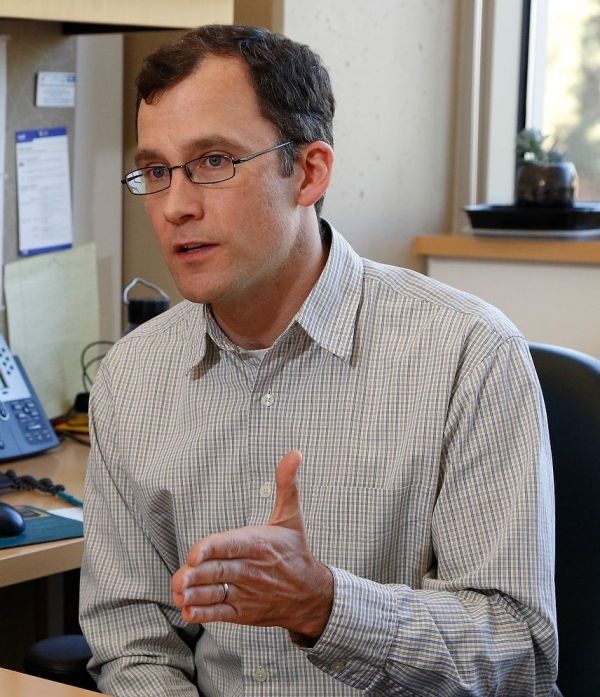 Photo: James Lloyd-Smith in his UCLA office. CREDIT: Reed Hutchinson/UCLA