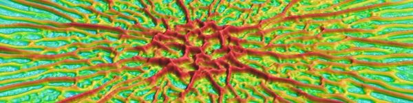 Image: Sticky patches of bacteria called biofilms often form intricate, starburst-like patterns as they grow. Researchers at Princeton University combined expertise in molecular biology, mechanical engineering and mathematical modeling to unravel the physical processes underlying the biofilms’ curious crinkles. The image shows the surface topography of a Vibrio cholerae biofilm after 40 hours of growth on 0.6% agar. Image courtesy of the researchers