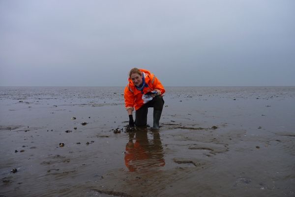 Photo: Jennifer Welsh during fieldwork in the Wadden Sea