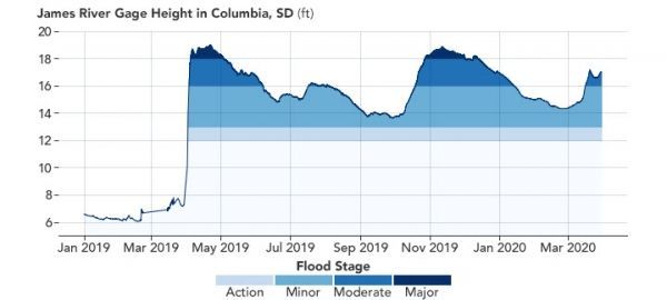 With many parts of these states coming off their wettest years on record, soils are already saturated. In South Dakota in 2019, many areas received about twice the average amount of precipitation. Rain and snowfall have been so relentless that at least one river has been stuck at flood stage for more than a year.