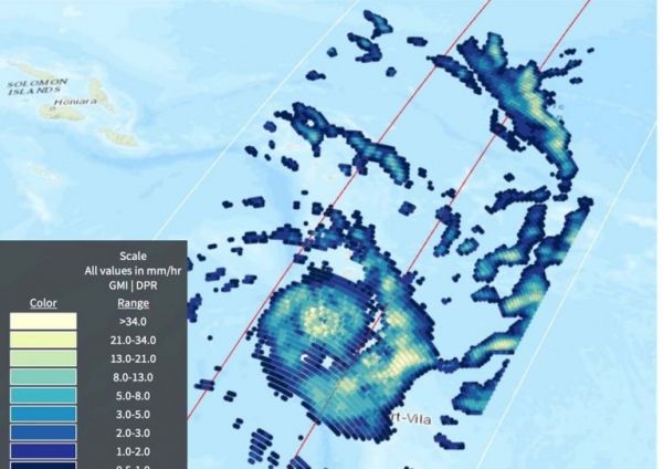 One of NASA’s satellites that can measure the rate in which rainfall is occurring in storms passed over powerful Tropical Cyclone Harold just after it made landfall in Vanuatu in the Southern Pacific Ocean.