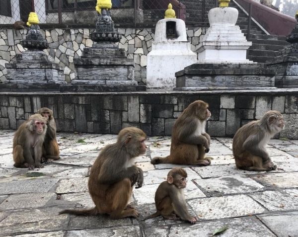 Image: Rhesus macaques at Kathmandu, Nepal temple. (Christine Kreuder Johnson/UC Davis)