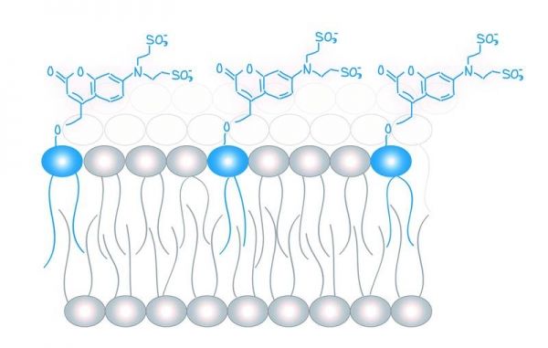 Image: Molecular probes (in blue) for the analysis of lipid messengers. CREDIT: Schuhmacher et al., MPI-CBG