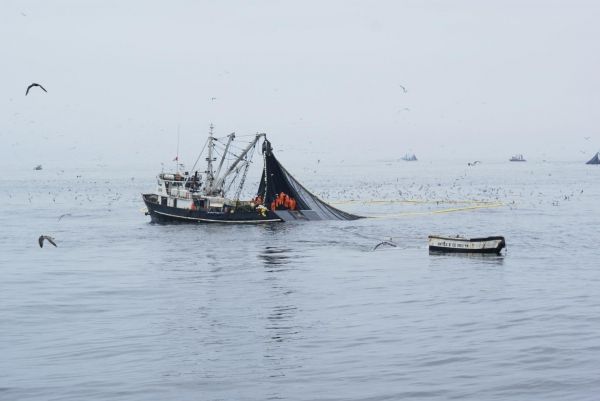 Peruvian industrial purse seiners in full activity of anchovy fishing. (Photo Credit: IRD - Arnaud Bertrand)