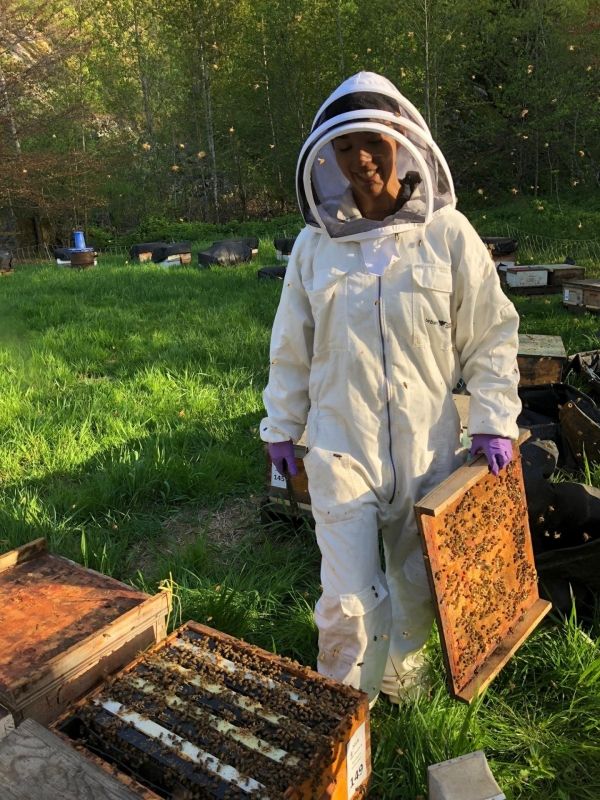 Alison McAfee in a beekeeping suit (Photo Credit: Alison McAfee)