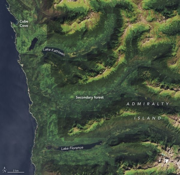 However, years of logging and ecosystem change near a cove in the northwestern part of the otherwise pristine island have left their mark. During a period of logging in the 1980s and 1990s, old-growth forests in certain stream and lake valleys were stripped bare. The changes near Cube Cove altered the island’s coastal temperate rainforest ecosystem, requiring that bears—and several other types of wildlife—make adjustments. In addition to having some of the world’s most productive bald eagle habitat, the forests and waterways around Cube Cove support deer, otters, martens, minks, and many types of other birds and fish.