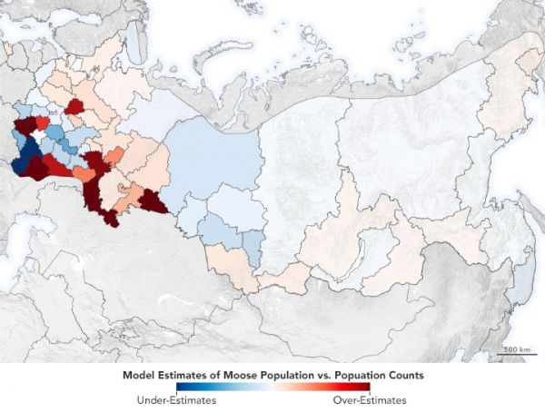 A team of researchers from the U.S., Europe, and Russia set out to use satellite data and computer models to figure out where moose live in Russia and why they should be more and less abundant in different regions. In theory, more abundant and seasonally consistent vegetation (food) should mean more moose, but they wanted to know whether vegetation health was the best predictor. Such models can be useful for managing animal species and conserving forests and other lands.
