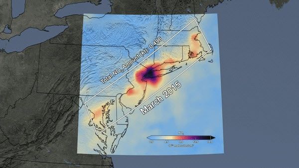 Ongoing observations of air quality and of Earth at night have helped provide immediate examples of how Earth’s systems are responding to these changes in human behavior. From space, NASA’s Ozone Monitoring Instrument (OMI) aboard the Aura satellite and the European Space Agency’s TROPOspheric Monitoring Instrument (TROPOMI) aboard the Sentinel-5P satellite have provided the data behind the images of rapidly falling nitrogen dioxide (NO2) levels around the world due to people sheltering in place.