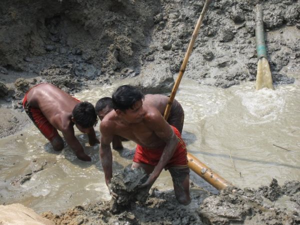 Image: In Bangladesh, one of the most vulnerable countries, a crew excavates a riverbed for a new bridge. Outdoor labor is a way of life in many of the regions subject to the worst heat and humidity. (Credit: Kevin Krajick/Earth Institute)