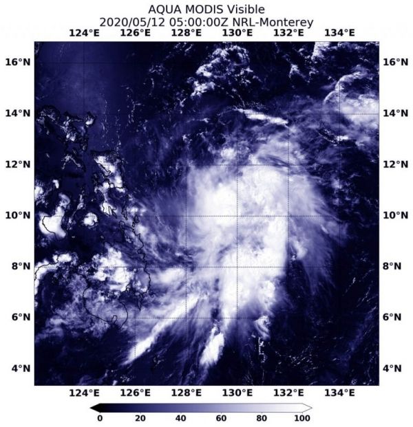 On May 12, the Moderate Resolution Imaging Spectroradiometer or MODIS instrument that flies aboard NASA’s Aqua satellite provided a visible image of Vongfong that showed the storm had a more rounded shape than it did the previous day, as it continued to consolidate. A more rounded shape in a tropical cyclone indicates it is becoming a more organized storm. Infrared satellite imagery also indicated cooling cloud top temperatures, which means that cloud tops are extending higher into the troposphere. The higher the cloud top, the stronger the uplift of air in a storm, and usually, the stronger the storm.
