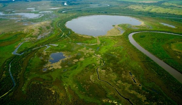 Image: Aerial view of Wood Buffalo National Park's boreal wetland wilderness. (Credit: Donald Baird)