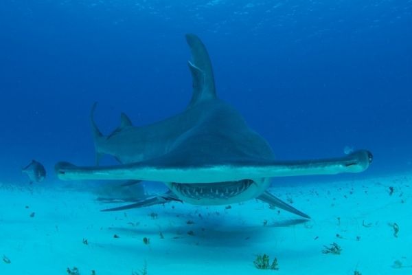 The blacktip shark is both an agile predator of teleost fishes, cephalopods and crustaceans and a prey for larger sharks, such as the great hammerhead, which can get as big as 18 feet long. Despite their large size, hammerheads are often found in relatively shallow waters that are likely an important area for their feeding. Their prey typically includes stingrays, bony fishes and other sharks, so it is no surprise that they have been spotted in and around the blacktip shark aggregations, which provide an abundance of possible prey.