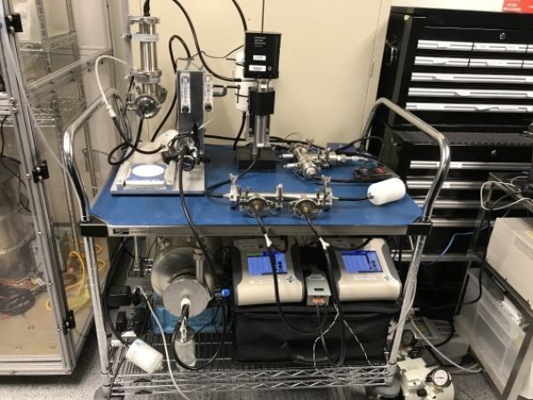 Photo: Filtration efficiency tests at the Lincoln Laboratory are measuring the percentage of particles in the size range of 300 nanometers to 10 micrometers that are filtered by respirator masks.