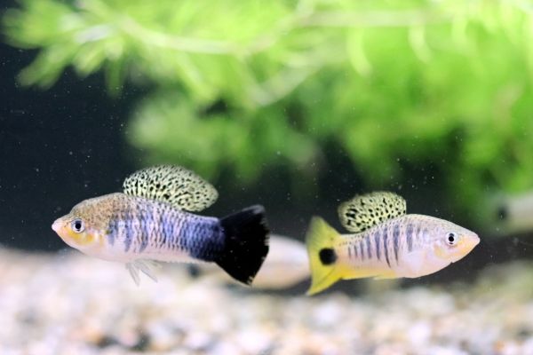 Image: Two hybrid male swordtail fish representing the extreme versions of the trait these researchers studied. The male on the left has melanoma and the male on the right has only a small spot. (Image credit: Daniel Powell)