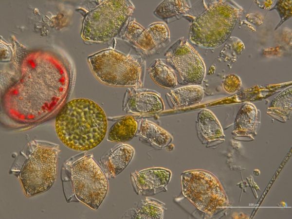 Image: A mixture of dinoflagellates and diatoms from the L4 coastal monitoring site off Plymouth (Credit Claire Widdicombe)