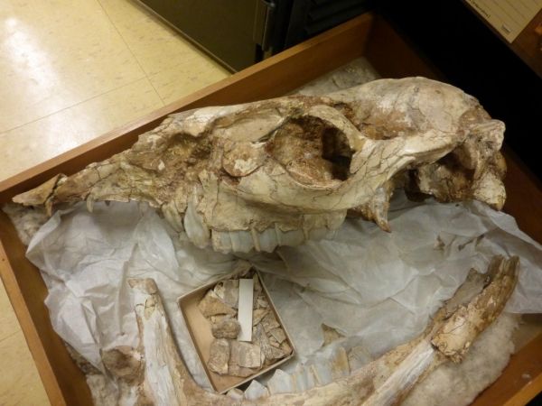 Image: Skull of Camelops, one of the now extinct North American camelids. Used with permission from the American Museum of Natural History. (Credit: Christine Janis)