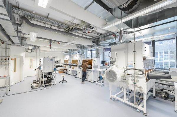 Image: A look inside the Helmholtz Innovation Lab HySPRINT. Major work on the printable perovskite LEDs was carried out here. CREDIT: HZB/Phil Dera