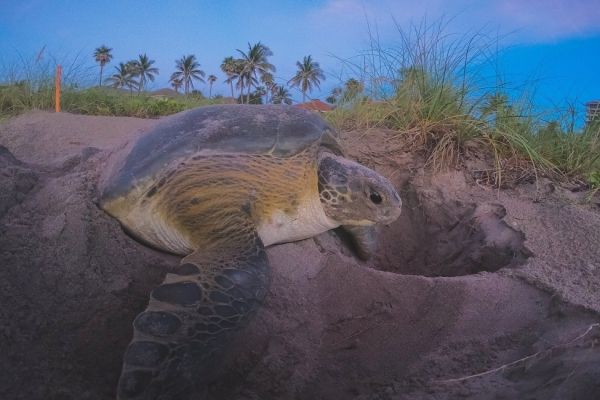 An adult female green sea turtle nesting on Juno Beach, Florida. (Photo credit: Jennifer Reilly)